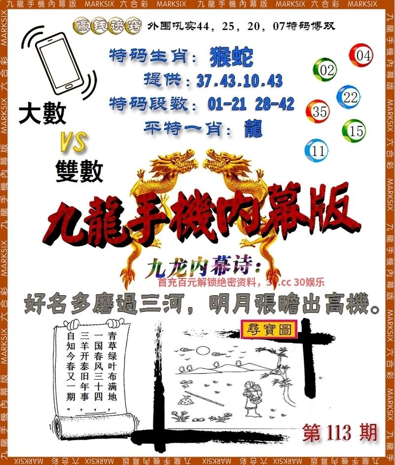 113期绝杀:10.12.22.28.34.36.46.48开蛇13准